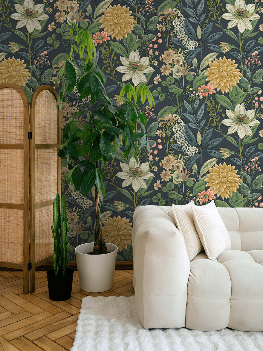 Capturing the expressive elegance of cascading florals, Clematis is a botanical canopy that elevates a room with drama and romance. Large, sculptural, and softly painted flowers trail across the wall creating a sense of gentle movement and effortless flow. With its grand florals, Anemone becomes a statement that adds sophistication and grandeur to any space.