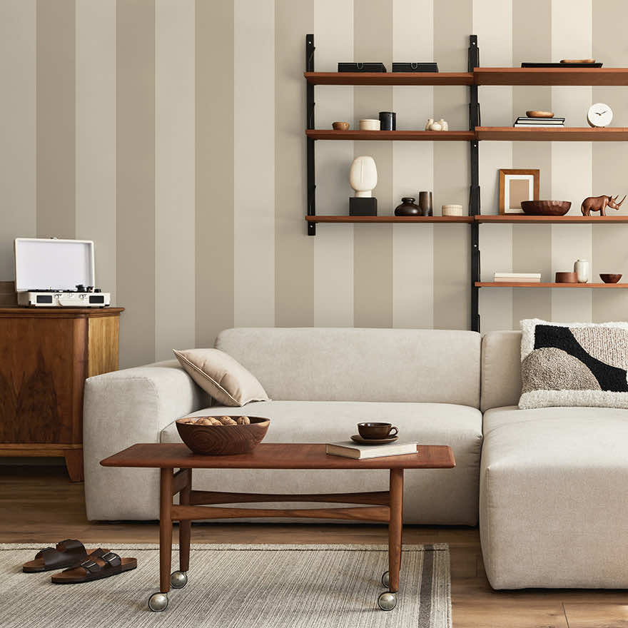 Cordelia Stripe embodies timeless nautical elegance with its bold, large-scale stripes that convey both structure and sophistication. The design balances simplicity and impact, transforming a wall into a statement of classic style. Cordelia Stripe is perfect for creating a sense of order while offering a bold backdrop that is effortlessly refined.
