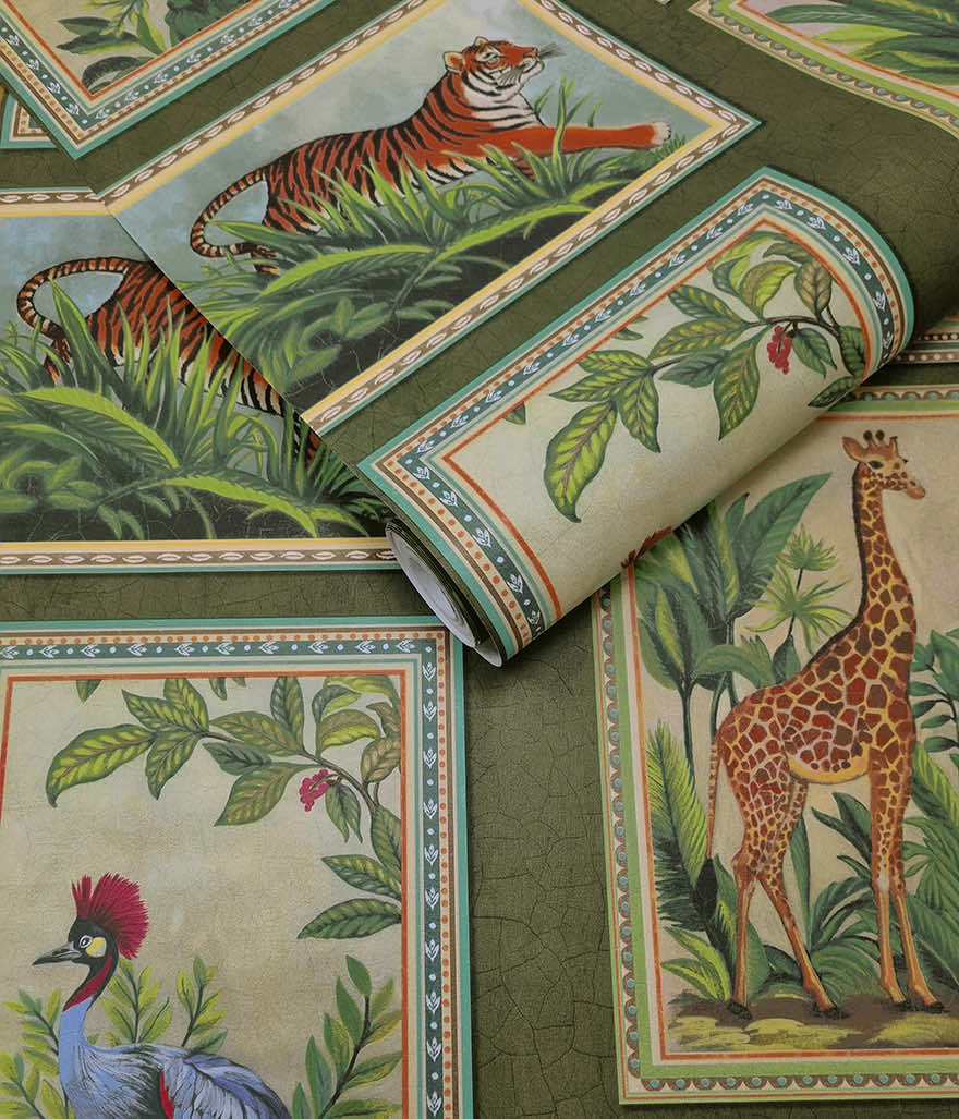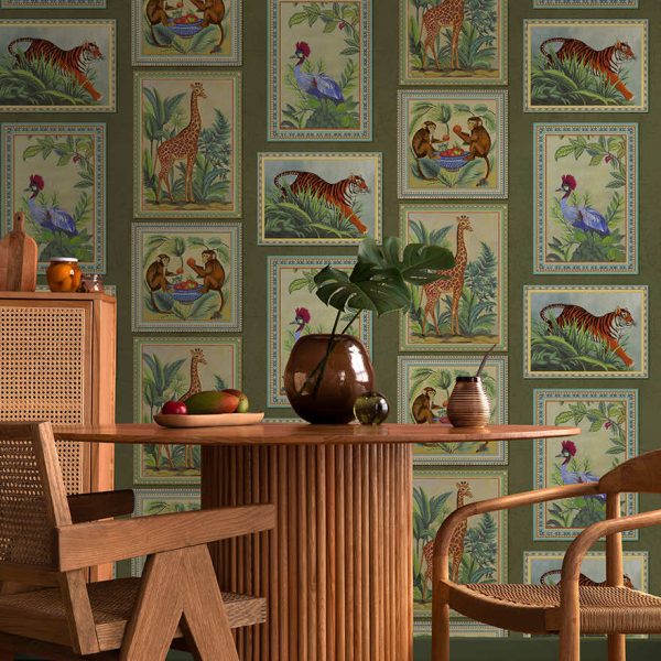 Menagerie is a curated journey through a tropical world that blends the romance of collecting with the vitality of the tropics, offering a sophisticated, story-rich backdrop. The paintings carry the charm of aged pigments, giving each frame a sense of history as though discovered in a traveller’s study. Menagerie is a wallpaper that feels both curated and alive, transforming any space into a refined gallery of wonders.