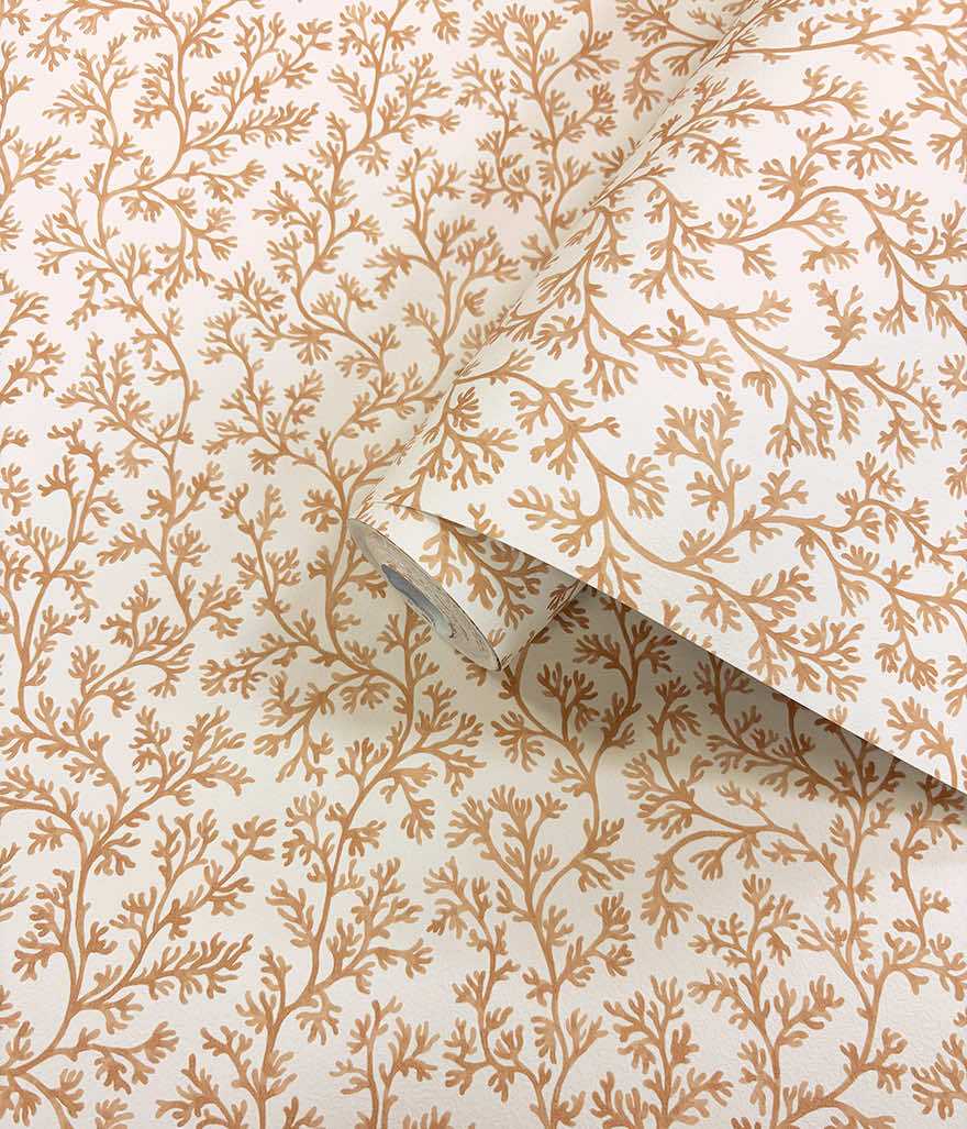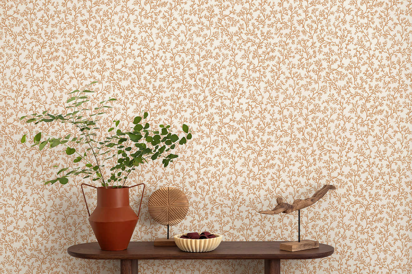 Posidonia distils the calming nature of the sea into a refined, small-scale coral motif. This design features delicate branching forms gracefully arranged to create a gentle silhouette across the wall. Elegant in its simplicity, this design brings a whisper of the ocean into any space, creating a backdrop that feels both refreshing and artfully composed.