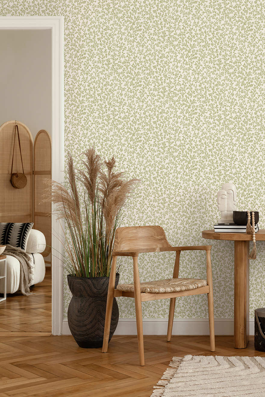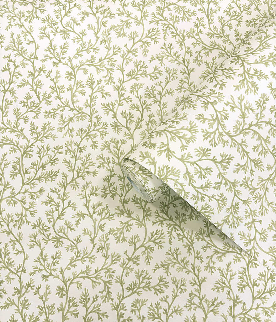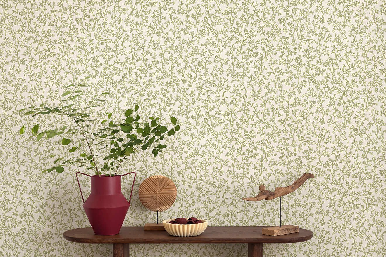 Posidonia distils the calming nature of the sea into a refined, small-scale coral motif. This design features delicate branching forms gracefully arranged to create a gentle silhouette across the wall. Elegant in its simplicity, this design brings a whisper of the ocean into any space, creating a backdrop that feels both refreshing and artfully composed.
