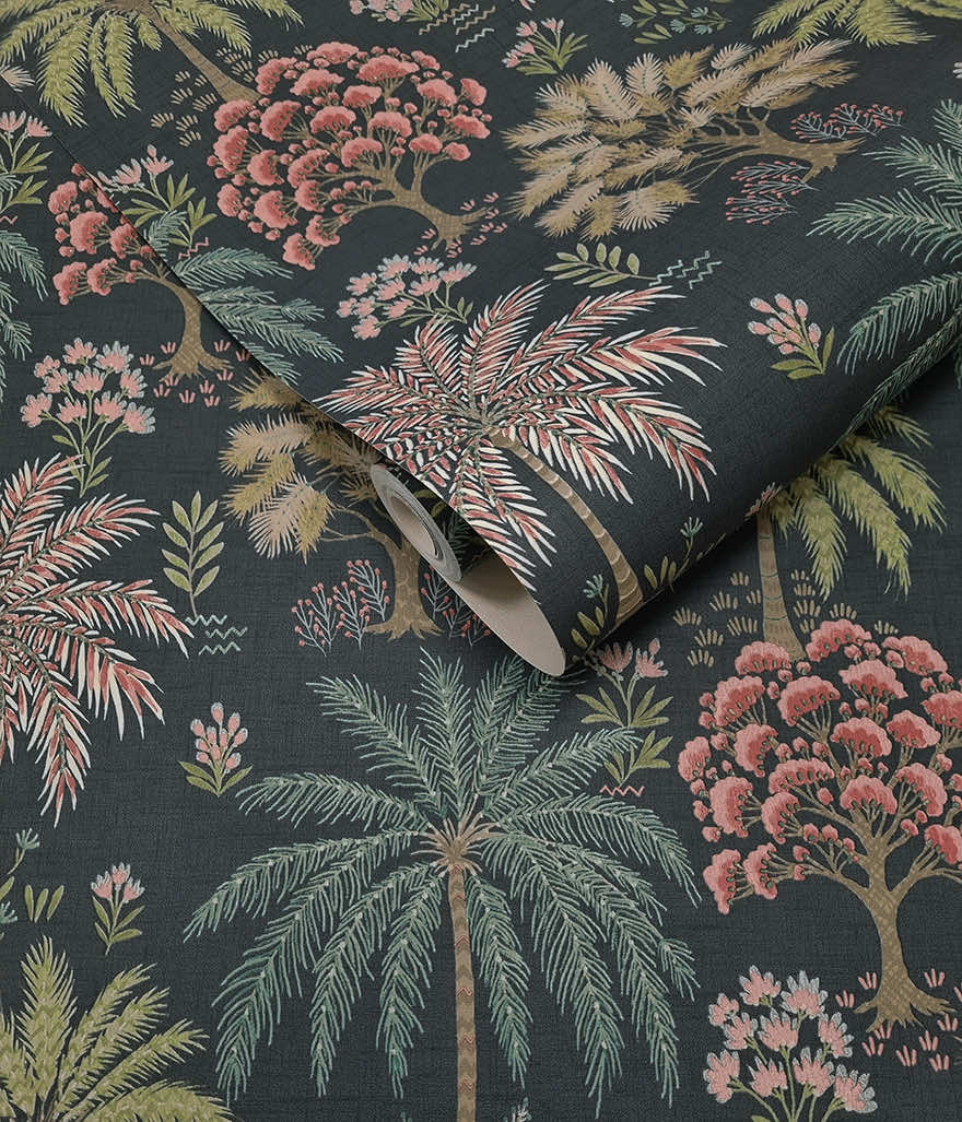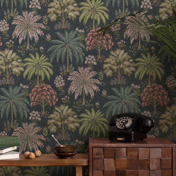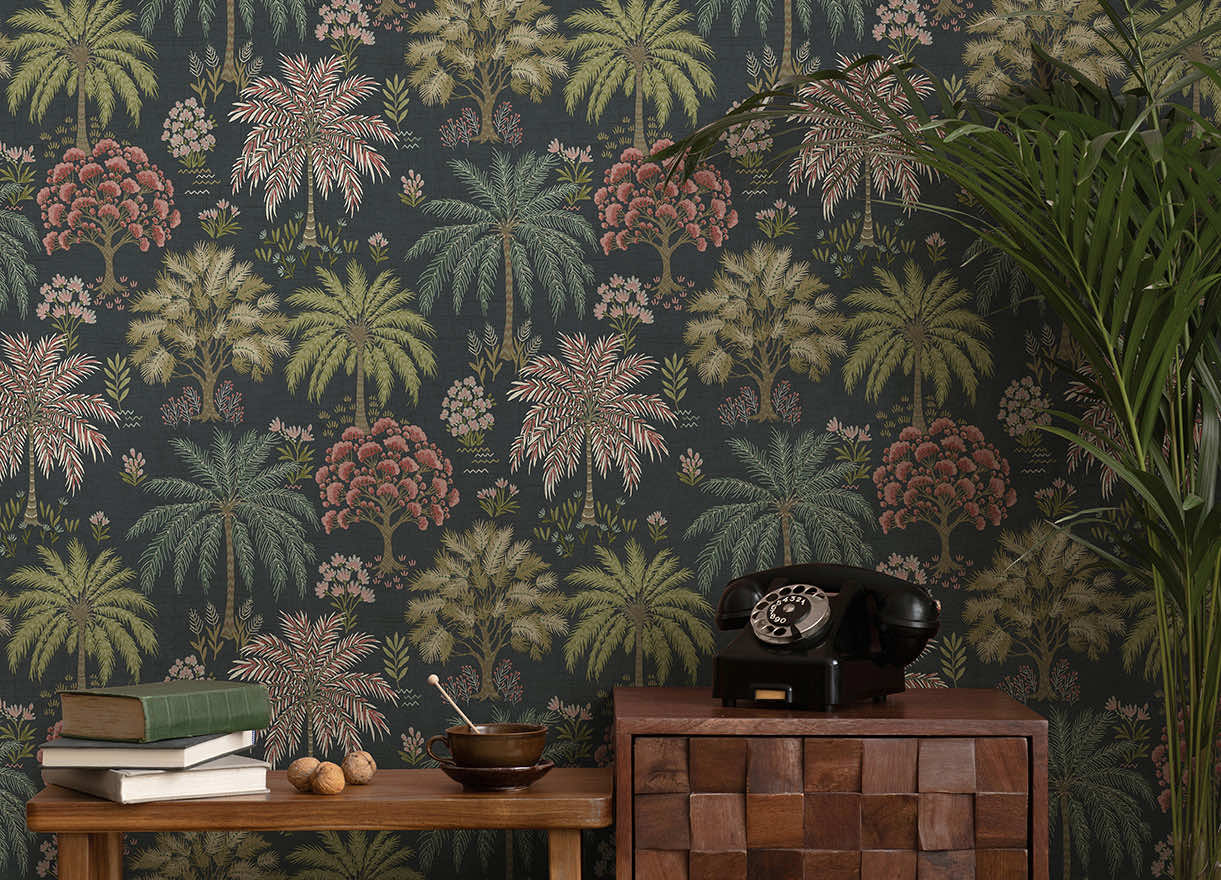 Featuring a sweeping vista of tropical trees, this wallpaper invites the viewer into the heart of the forest where lush fronds create a tapestry and transforms any space into a serene retreat. The lushness of the tropics is brought indoors in a design that is both sophisticated and calming, with foliage layered to create a sense of movement and openness, imbuing any interior with a sense of serenity, elegance and wonder.