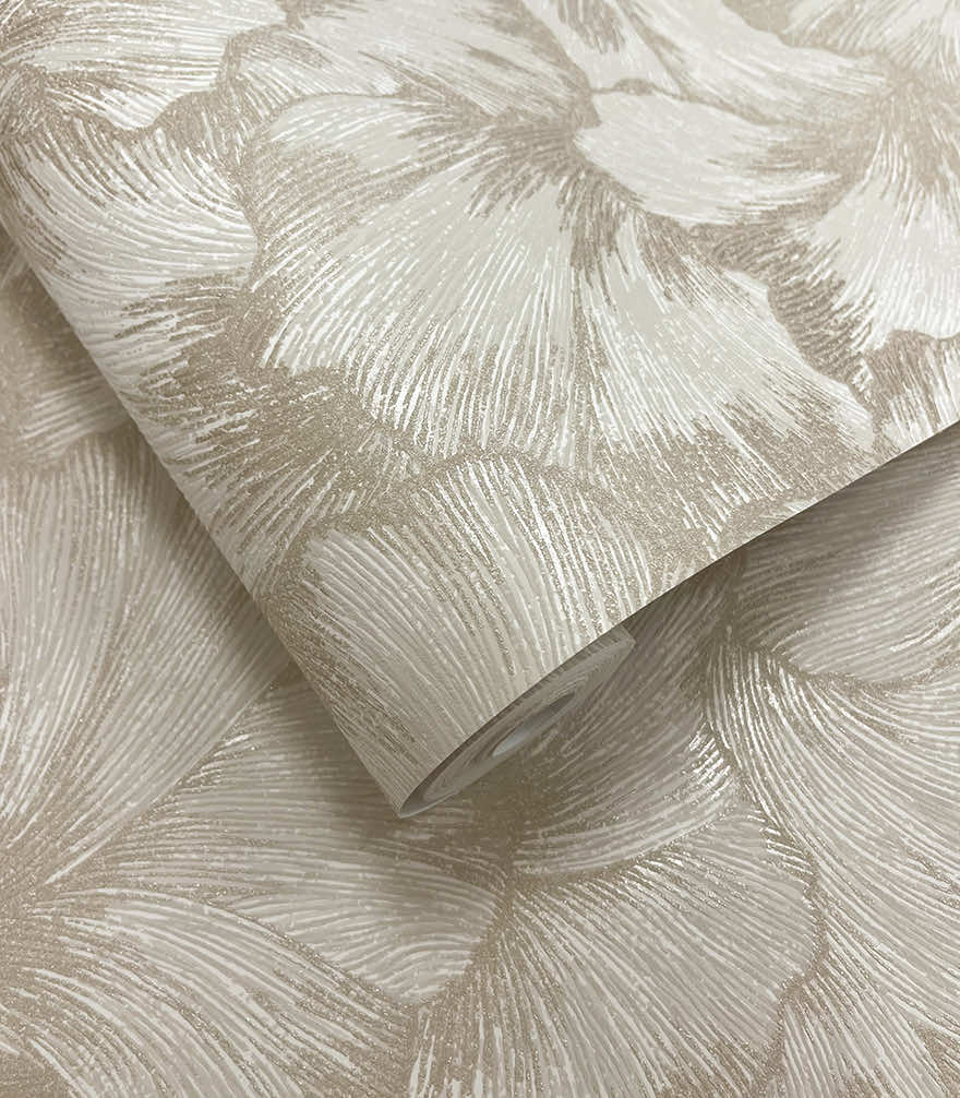 A graceful flowing ginkgo pattern enriched with metallic highlights that fall on top of a raised acrylic texture. The layered surface adds depth, movement, and a soft reflective shimmer—creating a serene, nature-inspired statement for contemporary interiors.