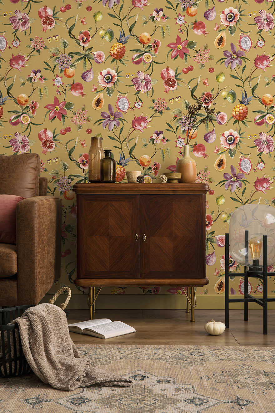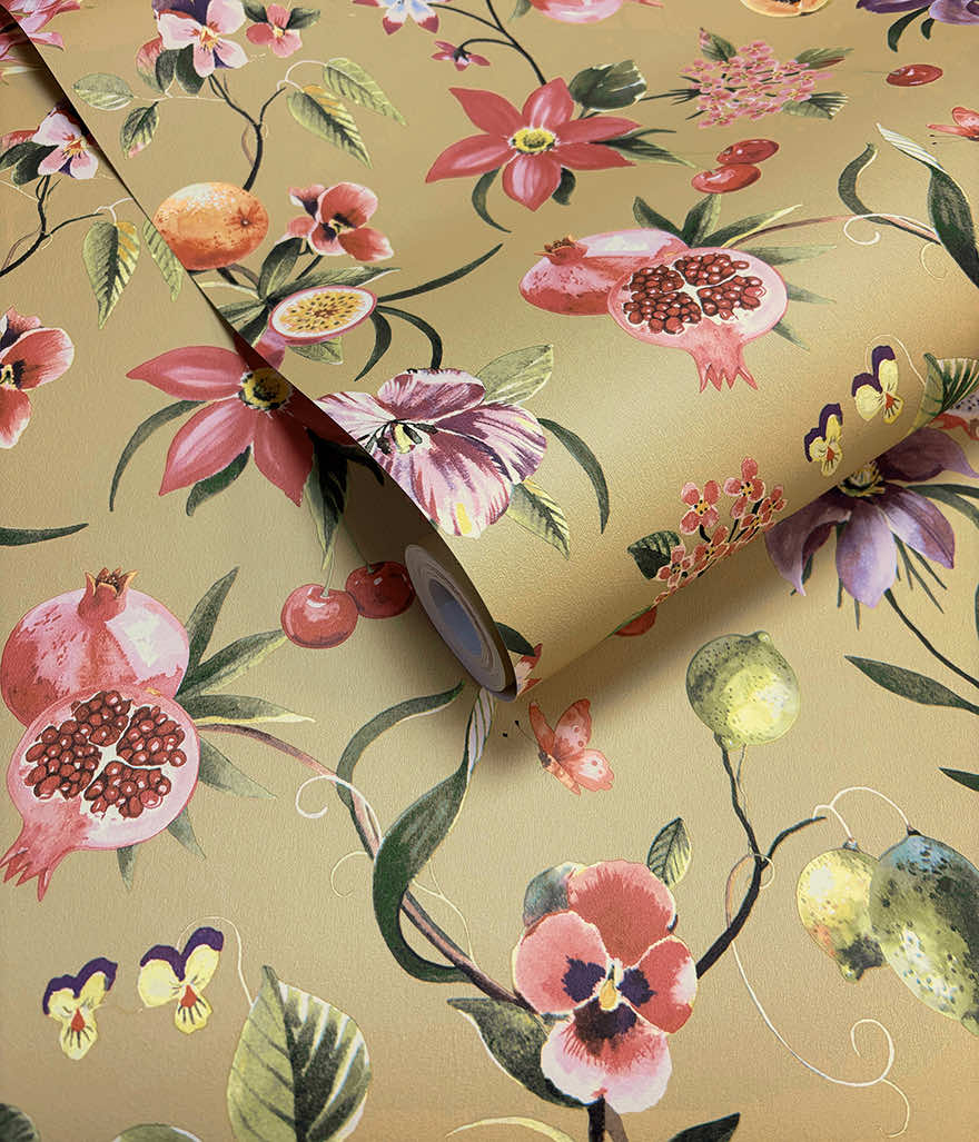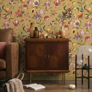 Celebrating the lush abundance of the tropics with a trailing floral design intertwining vibrant blooms and a rich variety of exotic fruits, Tropica is more than a decorative motif, it is an immersive celebration of tropical vitality, with its flourishing blossoms and painterly fruits appearing as unexpected treasures among the foliage. Elegant and abundant, this design transforms any space into a lush, sun-drenched garden where nature and colour are harmonious.